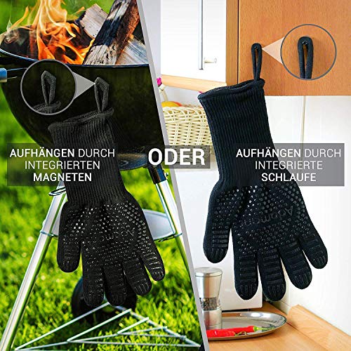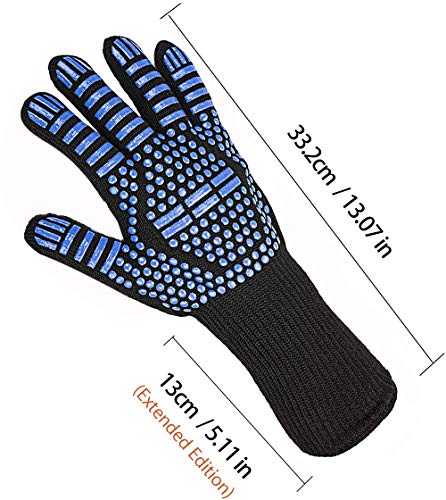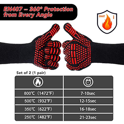 HEAT RESISTANCE UP to 500 ℃ / 932 ℉, EVEN UP to 800 ℃ / 1472 ℉ FOR ABOUT 13s - oven gloves have the EN407 certification, made of kevlar fabric, a type of professional heavy duty synthetic grill material, heat resistant, cut resistant.