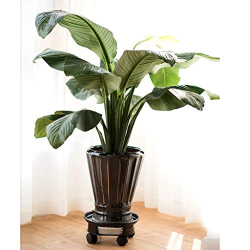 12"/13"/16"Plant Caddy,Round Plant Dolly Trolley Saucer Moving Tray Pallet with Wheels and a Water Container,Flower Pot Mover,Indoor Rolling Planter Dolly on Wheels,Black (Size : S)