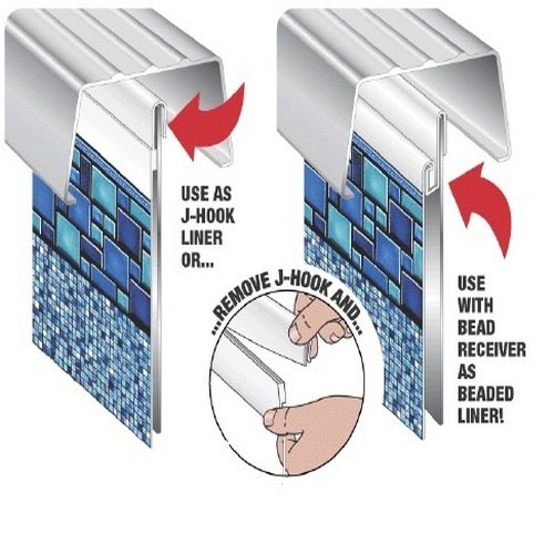 J-Hooks liners have multiple options for you to choose from so may be best for you to come into our show room and have a look at the pattern and tile band samples that are on offer, you could even compare an overlap standard liner compared to our pattern with tile band liner which we have on display. J-Hooks liner are more expensive compared to a standard overlap, but you can really see the difference in durability, ease of installation and the finished look. A 30tho j-hook liner will last up to three times longer than the standard overlap liner and has no comparisons in terms of overall aesthetics look of the pool. In the gallery you will see a doughboy pool with and without a j hook liner and you can see the difference for yourself! As additional upgrades goes we would suggest this along with heating are the most important upgrades available. In terms of installation, the j-hook liner is a lot simpler to install then the traditional overlap liner as with the traditional overlap liner you have to uninstall and install the top capping numerous times J-Hook Liners can be made for all size swimming pools such. Please contact us via our contact page or phone us on 01322554870 for a quote? The Price you see here listed is for the most expensive 18ft round steel frame pool which would be the Pattern and tile band liner in a 30tho thickness but there is also 20tho plain pattern which work out cheaper. When contacting us please have the brand of pool you have along with sizes and whether you have coping on the base etc for us to quote http://www.worldofpools.com/jhook-liners-optional-upgrade-for-above-ground-swimming-pools-details.htm