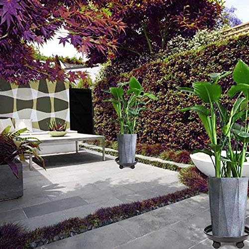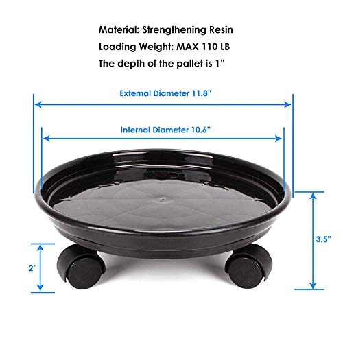 ⚘ OUTDOOR USE NON-STUCK ON CARPET - This heavy duty patio plant caddy with wheels is made of black strengthening resin will enable you to use the garden plant caster with wheels outdoors durably. The rolling plant stand with black fine surface will nicely compliment your patio, garden, yard or deck. Plant dolly or plant tray with wheels can be freely moved on house floor, even on the carpet, soil ground and lawn.