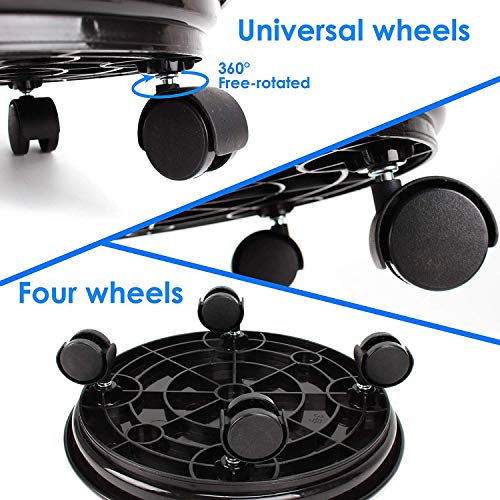 ⚘ DESIGN AND APPLICATION - Round shape pallet, suitable for multi-shapes of plant pots. And it has the function of water storage, prevent the floor from wetting when you are watering.This plant caddy can be widely used indoor and outdoor for moving garden pots, heavy plants, large potted trees, large vases, whiskey barrels, or heavy trash cans and can protect your floor from being worn out.