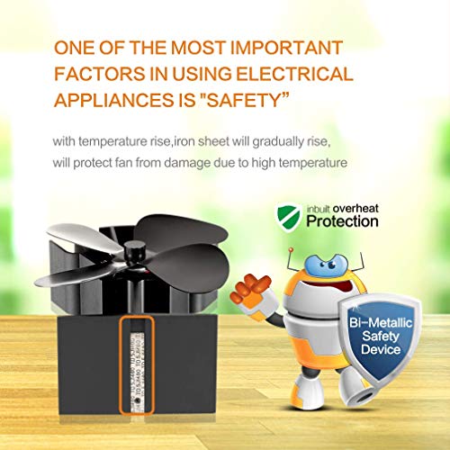 2020- Upgrade Stove Fans,4 Blade Fire Heat Fan Extended Fan Blade Design - Eco Friendly Circulates Heated Air Wood Burner Fan for Stove- Log Burner/Fireplace Best Partner