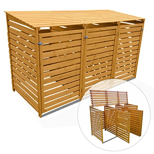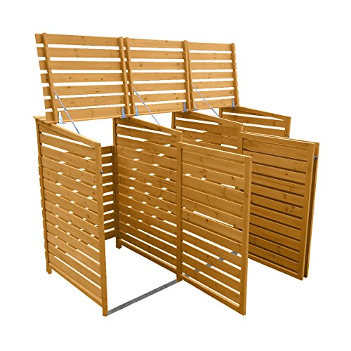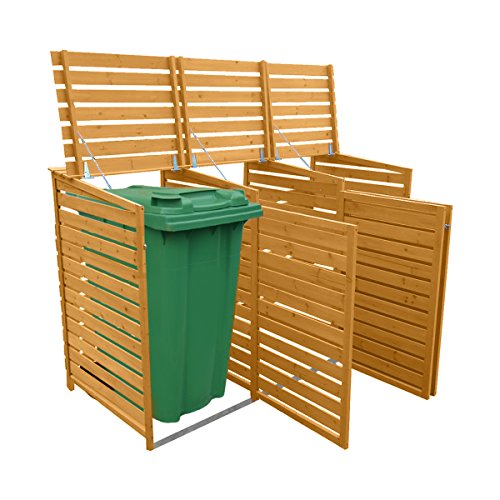 The KCT Wheelie Bin Store is made out of strong and durable Timber which provides an easy open/close hinged lid on every compartment, along with a front latched opening door for when the bin needs to go out.