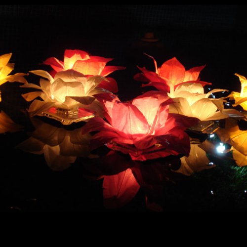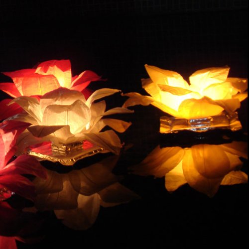 Glo-Lantern Magical decorative flower shaped lanterns, designed for use either in the garden or on water, the leaves can be adjusted to your preferred shape, the tea light included is inserted and lit to create a beautiful effect on either land or water