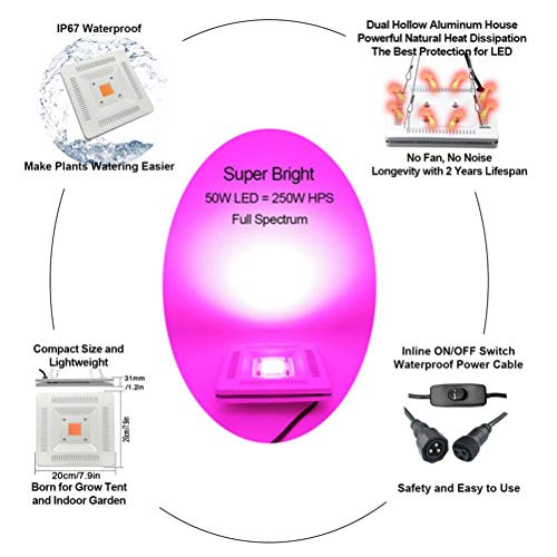 Durable Design: The light features the small COB light source, high waterproof reliability, and it is durable, and the spectrum of it is close to the spectrum of sunlight, and it features the high radiation value for plant growth.
