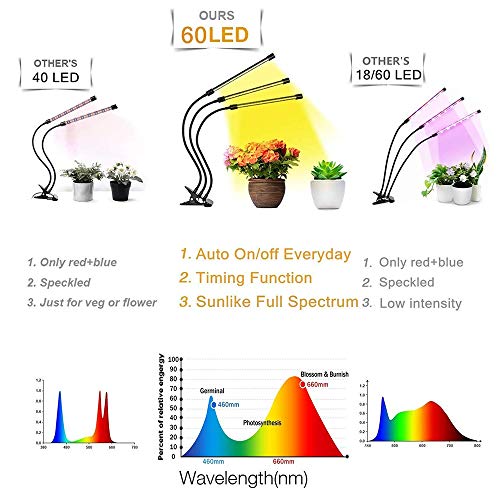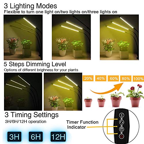 Auto On/Off & Cycle Timer: There are 3 time setting modes depending on the needs of different factories, which are 3 hours, 9 hours or 12 hours respectively. You do not need to manually turn on the timer function every day. After the completion time is set, the growth light will turn off and automatically turn on at the same time the next day.