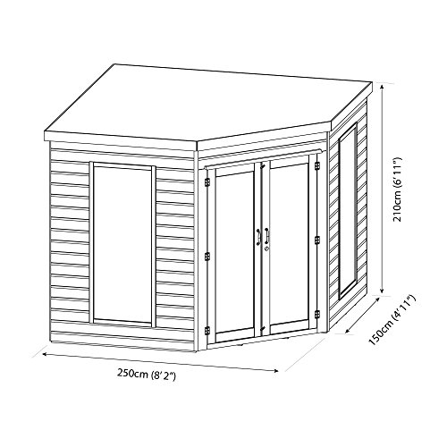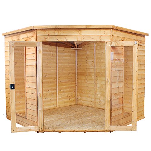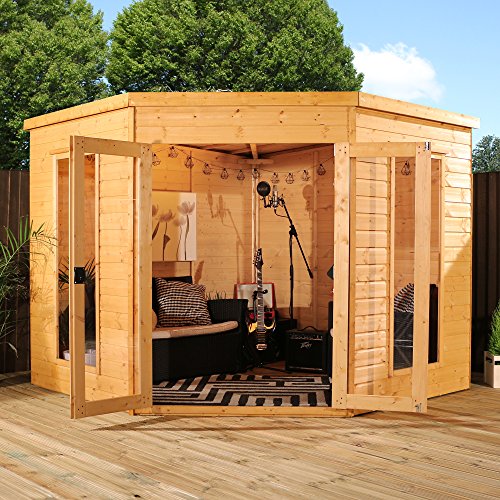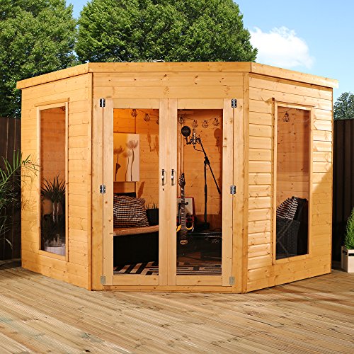 The 8ftx8ft Corner Summerhouse has been designed to fit snug into the corner of a garden. The clever design of this building means that you still gain the benefit of a spacious summerhouse without compromising space in your garden.