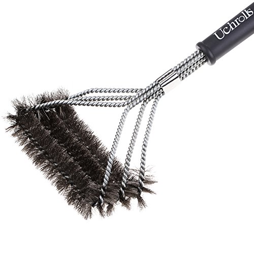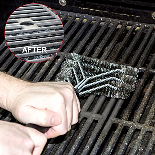 Steel Grill Brush features three rows of bristles; Angled,rounded head that allows cleaning between the grates more thoroughly and efficiently;