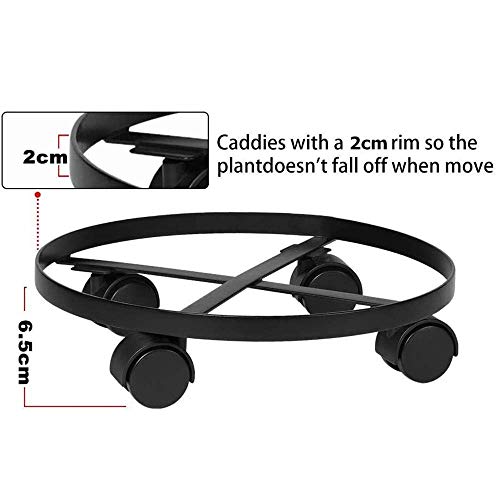 OUTDOOR USE RUSTPROOF & NON-STUCK ON CARPET: This heavy duty patio plant caddy with wheels is made of black iron with vinyl pvc powder coated surface will enable you to use the garden plant caster with wheels outdoors durably. The rolling plant stand with black fine surface will nicely compliment your patio, garden, yard or deck. Plant dolly or plant tray with wheels can be freely moved on house floor, even on the carpet, soil ground and lawn, and the wheels do not get stuck or locked up.
