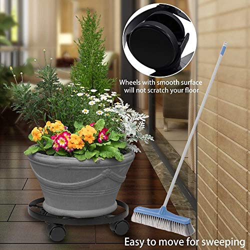 Amagabeli 4 Pack of 14" Metal Plant Caddy Heavy Duty Iron Potted Plant Stand Wheels Round Flower Pot Dolly Holder on Wheels Indoor Outdoor Planter Trolley Casters Coaster Black