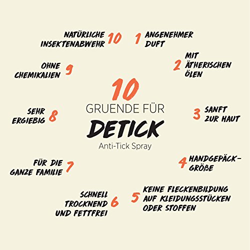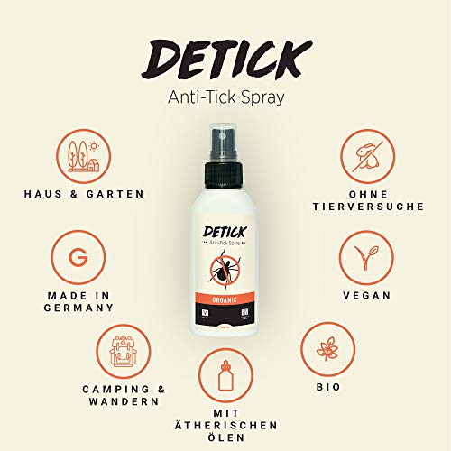 Anti-Tick Spray by DETICK I 100ml I Repels ticks & other household insects I With essential oils including geranium, eucalyptus and citrus I Alternative to Insect wipes & Mosquito nets