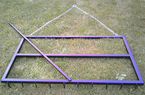 Use this to rake to scarify your school and then simply flip it over to level it out. • This leveller is 5 foot x 3 foot (approx 150cm x 90cm). • 10mm round solid tines 3 inch (75mm) long • Brand New Manufactured from 40mm box section. You can use anything with a central tow ball or pin to pull this as it comes supplied with a chain and a shackle to keep it central. The Main photo shows it in the raking position. Photo 2 Shows it levelling position Photo 3 shows the school after been raked. This sturdy design is ideal. Wether you have sand, rubber chip, woodchip, or sand fibre mix this will keep your arena/school in good condition all year round. Can be lifted by one person.