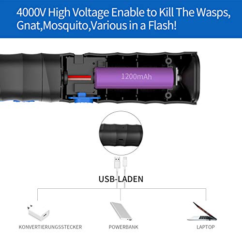【HIGHLY EFFICIENT KILLER】--Electronic fly swatter with a powerful 4,000-volt grid that enough to kill most small flying insects in a flash(such as wasps, gnats, fruit flies,mosquitoes, bees,flies, various flying insects and more). Get rid of your old fly killer with dangerous chemicals, you can start your healthy and quiet life with AUZKIN electric zapper !Tips:Since the handle contains a battery, the handle must connected to the electric mosquito swatter to release the current.