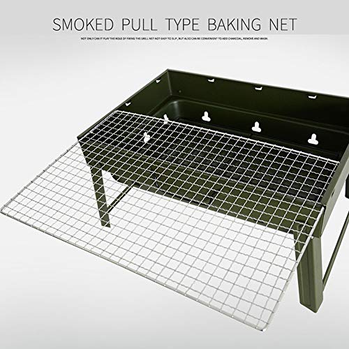 The pull-out grill can not only fix the grill to prevent it from falling down, but also be convenient to add charcoal, and remove and wash.