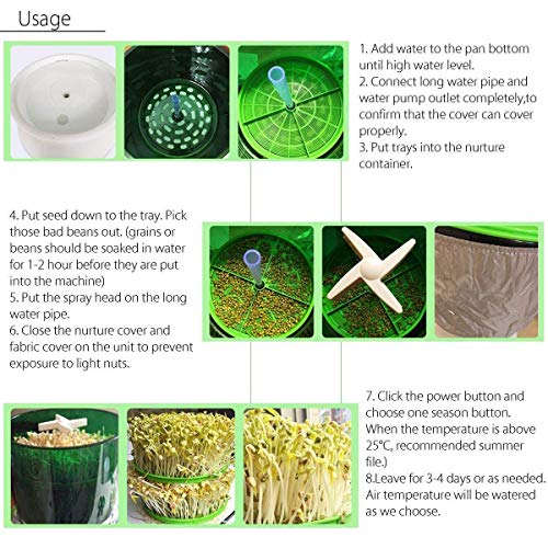 360-degree sprinkler, to prevent uneven germination of beans. Sprinkle water automaticly and consistently to provide sufficient water to grow the sprouts.