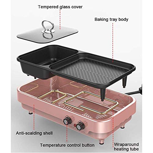 ★ safety protection, over temperature automatic power off temperature control. Copper core heating tube. The ring is heated, the heat is even, and the temperature rises rapidly. The barbecue and hot pot are independently temperature controlled and freely adjustable.