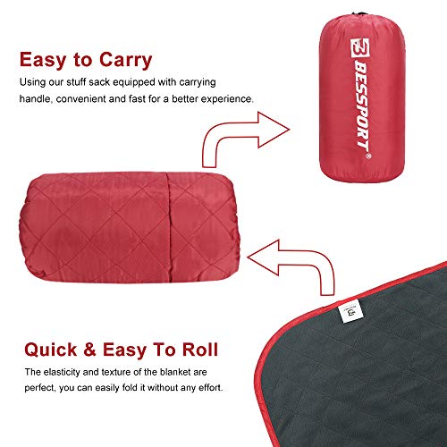 Ideal Size, Ultra Compact and Lightweight: Fold out to a large 79"x57" blanket, the camping blanket was designed to fit 2 persons comfortably, but it can fit up to 4 persons. It's also very light and quiped with a stuff sack and handle, very easy to carry. Making it be a perfect travel buddy for you.