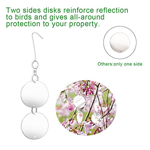 Do you have any problem with pest birds to where you live ? Do you often have to share your fruits and veggies with pest birds before you get any? They will not spend long time to damage your house with their nesting material and feces, and eat seeds, enjoy fruits and veggies when they are still green. Any ignorance may cause thousands of dollars damage, so you have to attach great importance to the problem. It's time for repellent ! It comes with everything you need. They are made of hard and wear-proof plastic which have better effect on "shiny distraction" for the birds and will be durable for lifetime. Simply put the hooks and disks together and hang them at places where birds may approach. They not only deter the birds without any damage, but a fabulous decoration to your house, plants and orchard, which looks like wind chimes hanging in the breeze.The feedback of our repellents turn out to be effective, you deserve to it.