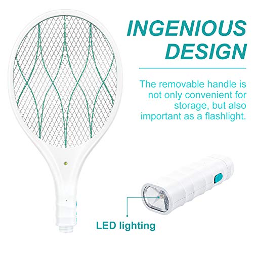 Bug Zapper, Fly Killer Fly Swatter USB Rechargeable Electric Mosquito Zapper Racket for Home,Outdoor,Powerful 4000V Grid, Removable Flashlight, LED Light, Safe to Touch with 3-Layer Safety Mesh