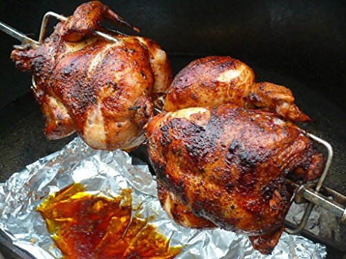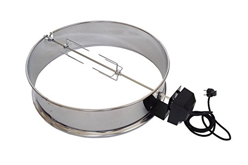 Easy to install on 57 CM or 22-1/2 inch kettle BBQ's. Fits among others on Weber kettles of 57 CM Equipped with a UK Plug (see picture) Tastier : Because the spit rotates all the time, your food bastes itself, the flavours and taste will exceed your wildest expectations! Healthier: The rotisserie action rotate your preperations in their own juices. The fat will cook away. The rotating motion and lack of contact with a grilling surface help avoid blackening of your products often associated with traditional BBQ / grilling. Easier : Cooking has neven been easier. Just put on the ingredients and the Rotisserie will do the job for you.