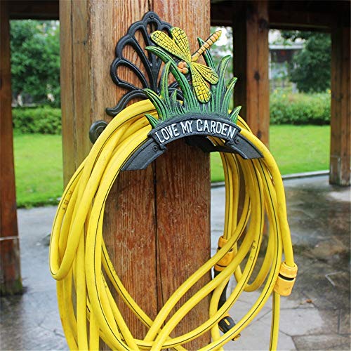 Chengdaorong Iron Hose Holder Love My Garden, Water Pipe Holds Rack Heavy Duty Cast Iron Metal Dragonfly Wall Mounted Hose Butler Rustic Wall Hose Hanger Reel Decorative Indoor Outdoor Hose Rack Reel