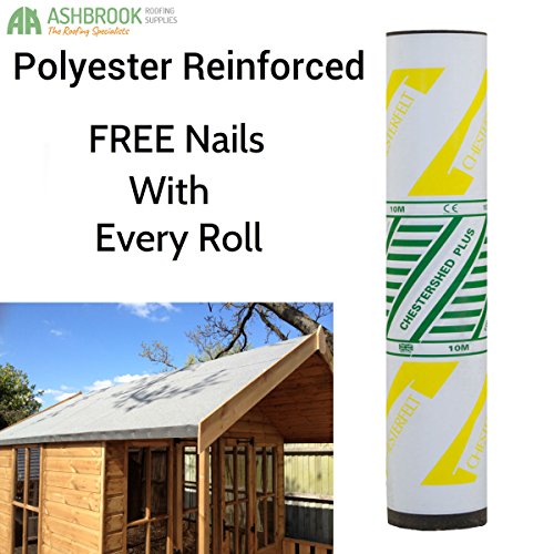 Chesterfelt Shed Felt Polyester Reinrced Green Mineral 10m x 1m. Chesterfelt Shed Felt is the traditional fibre based bitumen coated roofing felt with a protective and decorative green mineral finish. Unique polyester reinforced grid in the felt adds extra tear resistance and strength to the felt.. Superb quality polyester reinforced felt with a life expectancy of 15 years, suitable to use on roof with a pitch of 20 degrees or above. FREE bag of felt nails included with every roll you purchase. Quick and free delivery (most orders delivered within 48 hours). Buy with confidence from the Roofing Specialists!