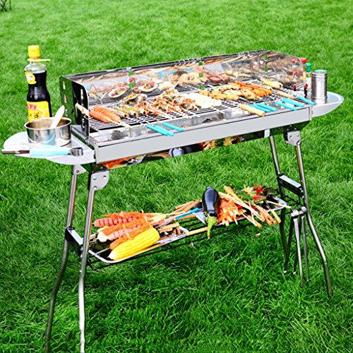 Made of high-quality stainless steel, the double layer is more resistant to burning, the bottom has a storage rack, free storage bag, barbecue accessories