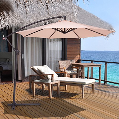 With the crank and the safety pin, can adjust the tilt angle of the parasol easily