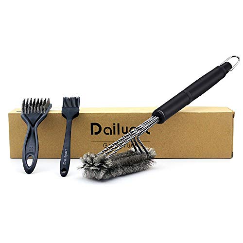 ✔ THREE BRUSHES IN ONE - The Dailyart Grill Brush Triple the surface area of standard wire brushes, with this BBQ accessory you will be able to scrub clean all parts of your barbecue grate faster than ever before. Designed each brush with its own equivalent stroke, it is prepared to clean every bit of residue with its innovative 360 degree rotator.