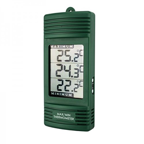 These digital max/min thermometers simultaneously display the actual temperature whilst displaying the max and min temperatures that have been reached since the unit was last reset. Each thermometer measures temperature over the range of -20 to 69.9 °C with a 0.1 °C/°F resolution and is ideal for recording temperatures in an office, factory, laboratory, home, greenhouse or conservatory. The thermometer is extremely easy to use. To switch the current reading between °C and °F or reset the recorded max/min temperatures simply press the button on the side of the unit. The unit is housed in an ABS case measuring 29 x 79 x 187 mm. The instrument incorporates a slot for hanging and is powered by a single AA battery (supplied). The unit has temperature accuracy of ±1°C. Weight 180 grams