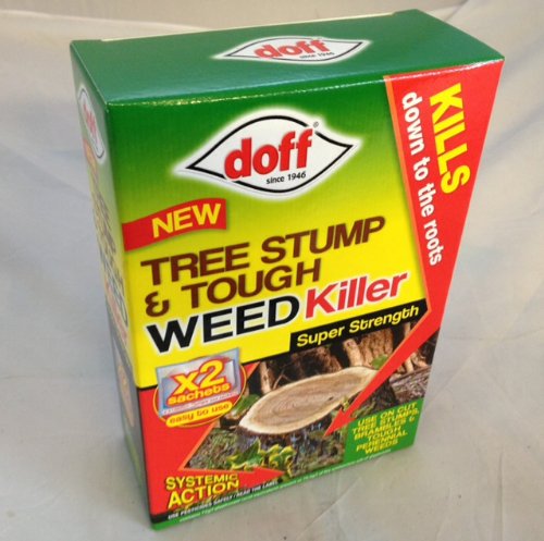 Kills tree stumps (hard and soft wood), brambles and controls annual and perennial weeds such as grasses, nettles, willowherb and dandelions around the garden. Doff tree stump and weedkiller is a systemic total herbicide containing Glyphosphate. After absorbing through the foliage or cut stump, it is distributed throughout the plant and down to the root system where it begins to work.