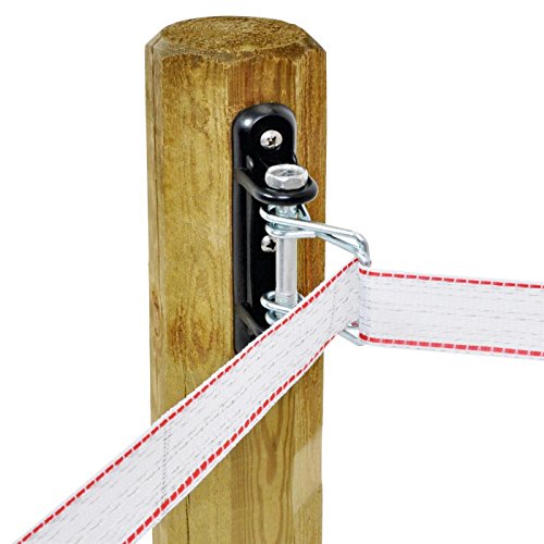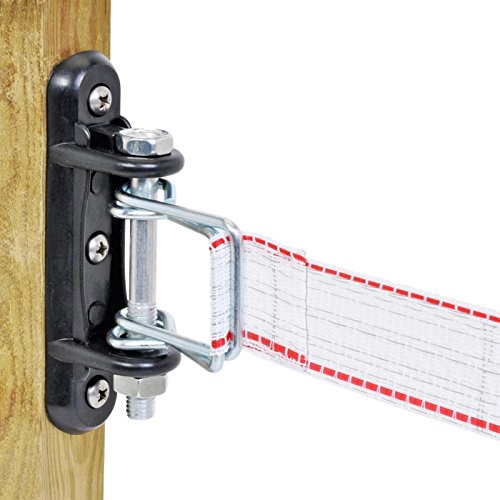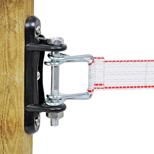 The galvanised metal bolt and additional bracket enable it to handel high tractive forces. The higher the tractive forces, the more tightly the electric tape is clamped in the insulator. Retensioning of the electric tapes is also easily possible.