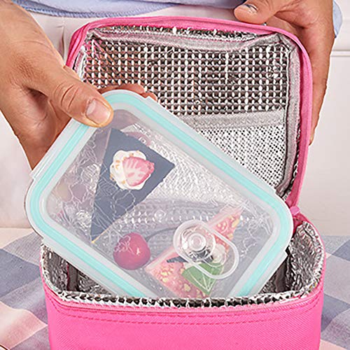Emorias Rose Red Cow Grant Membrane Portable Waterproof Insulated Lunch Bag - Multi-Fun Mini Picnic Travel Goods For Picnic, Travel And Work (1Pcs, Size 16 * 13 * 12cm)