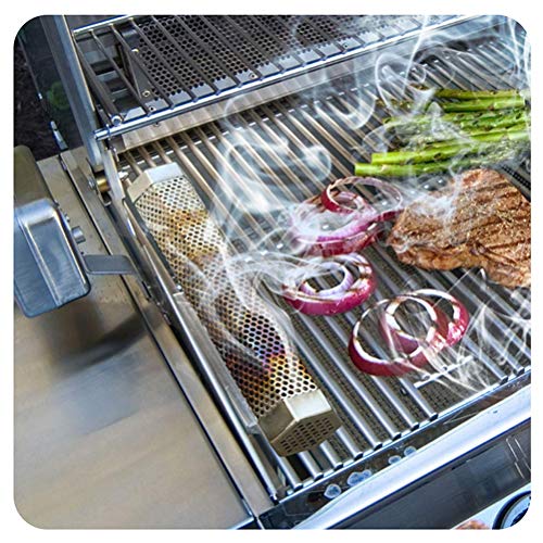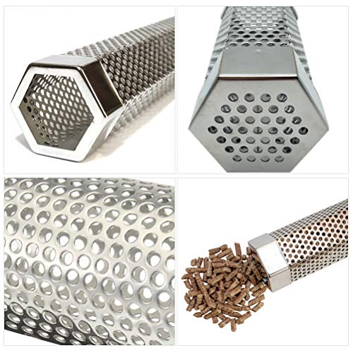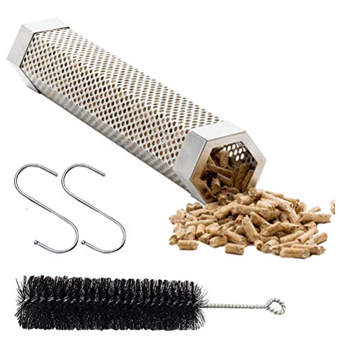 This granular smoked tube can be baked on most wood particles, such as peanuts, walnuts, almonds, etc. Place the pellets, ignite them, and place them on the grill.