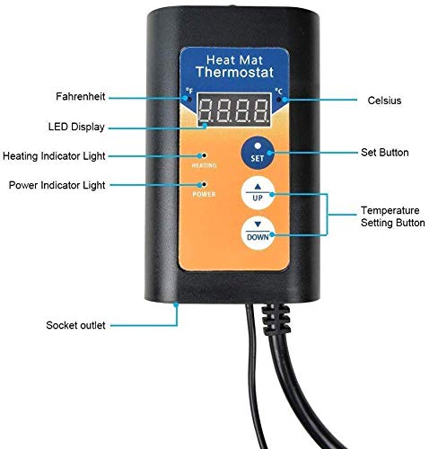 EASE OF MIND: Handy LED heating and power indicator lights allow you to see the controllerâ€s status even in total darkness. Controller features a convenient hanging tab, and a bright, easy-to-read display inside a tough plastic housing.
