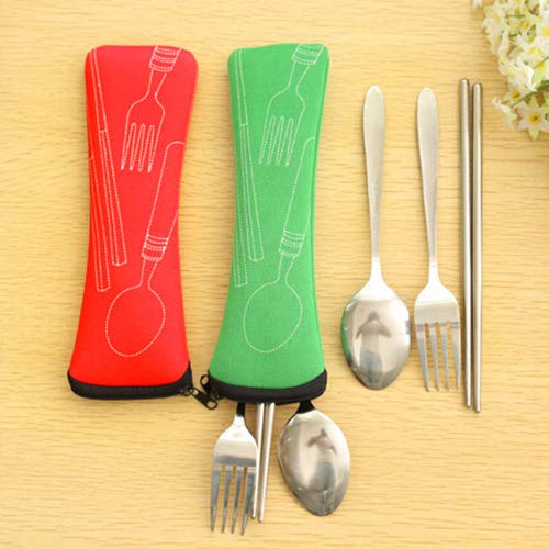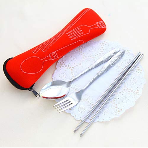 Feli546Bruce Premium Stainless Steel Camping Cutlery, 3 Pcs Fork Spoon Chopsticks Travel Stainless Steel Cutlery Portable Camping Bag Portable Utensils for Travel Hiking Picnic Lunch Utensils Camping