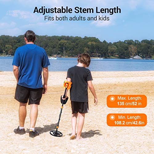 ➤EASY USE DESIGN: The length of stem can be adjusted to provide a comfortable height for adults or kids; cushioned handgrip and armrest with strap prevent any arm fatigue,and ensure even a child can use it easily; Large LCD display with backlight help you to easily control and read the metal type, depth, and battery indicator even in sunshine.
