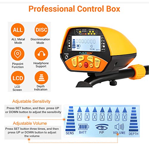 FLOUREON Metal Detector High Sensitivity Pinpoint Gold Detector with Adjustable ALL METAL&DISC Function,for Adults and Kids Family Leisure,Waterproof Coil,Folding Shovel and Headphone