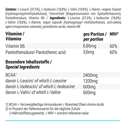 MAXIMISED PERFORMANCE: The three piece power pack (leucine, isoleucine, valine) in our BCAAs provide you with a constant power level and support your active regeneration