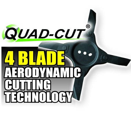 Quadcut mowers have 4 aerodynamically designed blades which spin at up to 200MPH. 4 aerodynamic blades means that they develop twice the suction effect on the grass clippings and twice the compaction effect on them in the grass catcher.