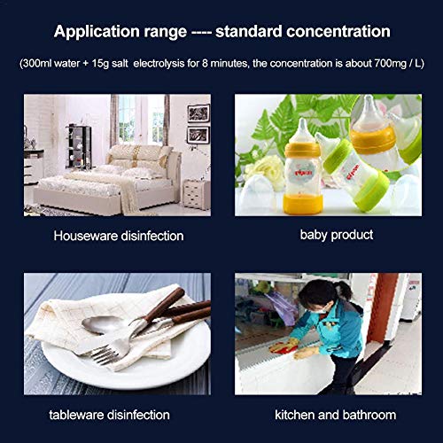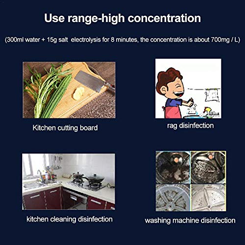 Wide Functions: Just add water and salt to produce disinfection solution by electrolysis, and evenly spray on the surface of the items or equipment that need to be disinfected. The liquid will natura