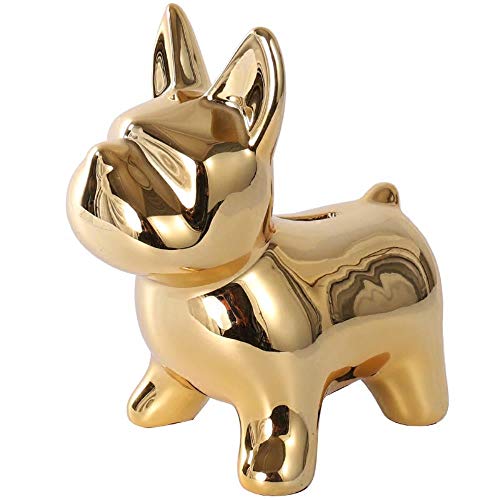 FUYIO Bulldog Stainless steel Crafts Sculpture Creative Gifts Modern Simple Home Decorations Statues Coin Desktop Ornament,golden