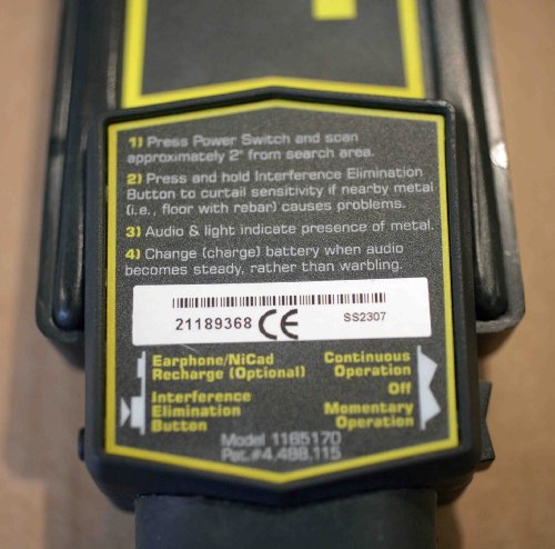 The Garrett Super Scanner detects medium-size pistols from a distance of 9", large pocket knives up to 6", razor blades up to 3", hatpins up to 1" away.