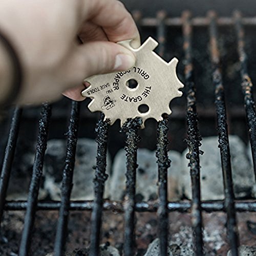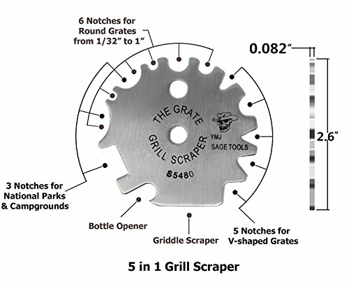 Material Type:Stainless Steel | Size:0.86x2.6in Get your grill grate clean as a whistle - without dangerous stray wire bristles. This 5 in 1 BBQ grill tool works with most grills and is a safe, effective way to prep your grill for your next BBQ ► Universal Design ► Safer than Typical Wire Brushes ► Compatible with Round, V-shaped and Square Grates ► Durable Stainless Steel Construction ► Small Size Lets You Take it Anywhere ► Includes Hanging Hook and Chain ► Includes Bottle Opener and Griddle Cleaner ► Charcoal ► Propane ► Infrared ► Kamado ► Gas ► Electric ► Pellet ► Smoker ► Indoor Ovens