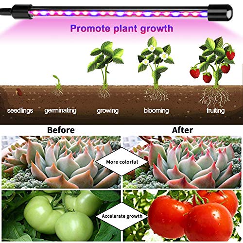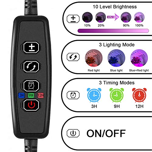 ❀[3 Light Modes &10 Dimming Levels] The indoor grow lamp includes red light and blue light, you can choose 3 color modes(Red Light, Blue Light & Mixed Light), and 10 brightness settings ranging from 10% to 100%, which effectively supplemented the lack of natural sunlight and promoted the growth of plants at all stages.