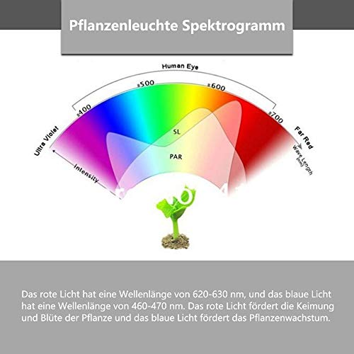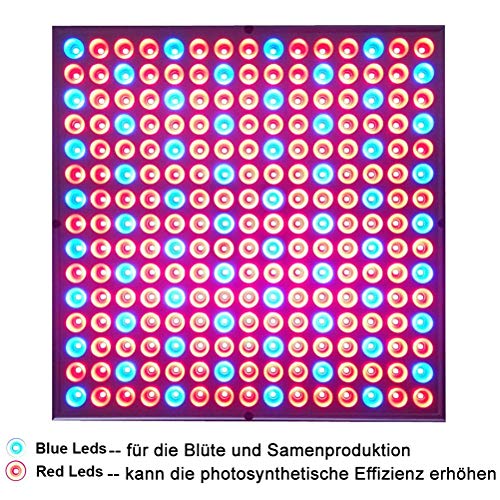 15W plant lamp with 225 high-quality LEDs: 165 red LEDs (620-630nm) and 60 blue LEDs (460-470nm), helps plants grow quickly, provides the right light spectrum for plant sprouts and grow. Red light is conducive to flowering and semen production. Blue light can increase the photosynthetic efficiency, thereby favoring the stems and leaves.