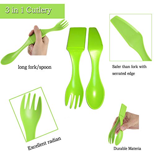【Bowl + Cup + Spoon Cutlery + storage bag Set】: The cup only 5 cm height and the bowl is 4.5cm height when folded, The spork knife is 18cm/7" in length, which can be used combined or separately. Give a quality recycled mesh bag. The portable camping set is perfect for outdoor hiking,sport events, travel and picnics.