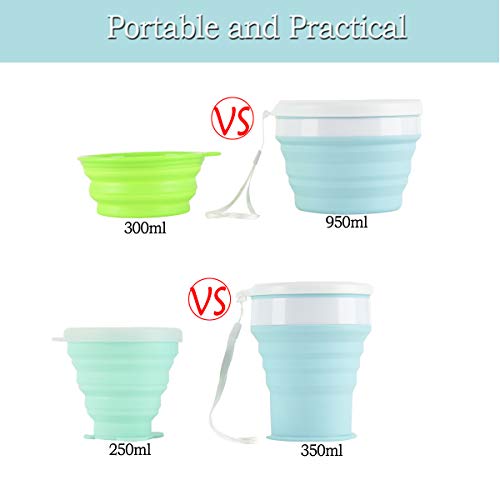 【Upgraded 350ML Portable Cup& 950ML Collapsible Bowl】: This improved large collapsible cup can hold 350ml/12oz water. When you get thirsty in traveling, you need a bigger cup.And the attached lanyard could be used for hanging on a backpack. 950ml X-Large folding bowl is more than twice of 350 ml. It can store the materials needed for camping and can also be instant noodles,more practical.