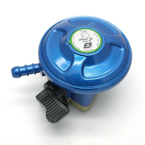Outlet pressure: 28 mbar max , Cylinder connection 21mm Butane , Outlet 8mm nozzle , Rating 1.5 kg per hr
