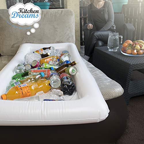 Inflatable Pool Table Serving Bar - 2 Pack Large Buffet Tray Server with Drain Plug - Keep Your Salads & Beverages Ice Cold - for Parties Indor & Outdoor use Bar Party Accessories - Kitchen Dreamers
